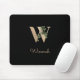 Élégant pavé de souris noir dispose d'un monogramme botanique doré au centre.