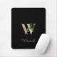 Élégant pavé de souris noir dispose d'un monogramme botanique doré au centre.
