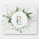 Cette mousepad présente une jolie couronne d'aquarelle verte et un alphabet "R" à personnaliser avec son nom en dessous.