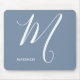 Tapis De Souris Lettre Script monogramme simple M Bleu & Blanc
