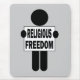 Ce dessin montre un manifestant tenant un panneau de liberté religieuse.