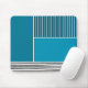 Ce pavé de souris a une conception géométrique d'un grand rectangle turquoise dans le coin supérieur gauche, des bandes turquoises plus foncées dans le coin supérieur droit, un rectangle turquoise plus léger sous les bandes, et des lignes noires dans le bas. Si vous aimez le design mais préférez différentes couleurs, envoyez-moi un message.
