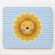 Illustration d'une tête de lion sur un arrière - plan rayé bleu.