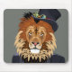 Ce portrait de caractéristiques de conception d'un lion dans le costume et le casquette d'un homme.
