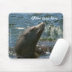 Lion de mer couché nageant dans l'eau et profitant du soleil. Ajoutez votre propre texte en utilisant ce modèle et en remplaçant les mots "Votre texte ici".