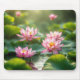 Des fleurs de lotus roses flottent gracieusement sur un étang calme entouré de feuilles verdoyants, sous une douce lumière chaude