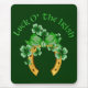 Des shamrocks chanceux et un fer à cheval doré avec un accent de ruban vert. Le texte dit... J'Ai De La Chance Aux Irlandais. Plus de cadeaux, de cartes et d'affranchissement disponibles dans cette conception