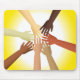 Mains humaines de différents milieux raciaux atteignant et se touchant.