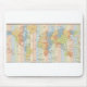 This design features a public-domain map of the world with the standard time zones for each region color-coded. There are twenty-four time zones displayed, with non-standard half-hour time zones also listed. The map shows all of the world's major countries: it shows the continents of Asia, Africa, North America, South America, Europe and Australia. The time zone of Universal Time Coordinated (UTC) is displayed in the center of the map, while earlier time zones are shown to the left and later time zones are shown to the right.
