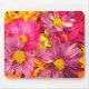 Les marguerites jolies violettes, roses et jaunes sont toutes douces et accueillantes sur ce tapis de souris