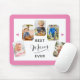 Ce tapis de souris est un cadeau parfait pour n'importe quelle maman. Le design offre de l'espace pour 5 photos, vous permettant de présenter des photos préférées de ses enfants. La calligraphie de style moderne dit : "Best Mom Ever" et est accentuée par un coeur rose et une bordure rose.