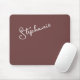 Minimalist Espresso Brown Stylish Trendy Script Personalized Name Mousepad. Simple to customize, just add a name or your own text. Perfect for office, home office, home decor, work station, kids rooms, back to school and going away to college gifts. Order yours today!