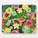 Tapis De Souris Mix-fruits tropicaux, fleurs et feuilles en noir