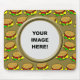 Conception savoureuse de frontière de modèle de cheeseburger. Remplacez juste le modèle d'arrière - plan par votre propre photo de famille ou visage drôle. Image disponible sur de divers cadeaux et produits.