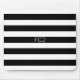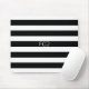 This mouse pad features a minimalistic design with black and white stripes with monogram in white font. The colors and font are customizable.