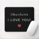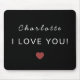 A modern personalized Valentine mouse pad featuring a handwritten name, the message “I Love You,” and a minimal heart accent. Designed with a clean, understated aesthetic, this mouse pad adds a personal touch to any workspace while remaining stylish and practical. A thoughtful Valentine’s Day or everyday gift for home offices, desks, and work-from-home setups.