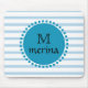 Tapis De Souris Monogramme Bleu Turquoise Or strié Cercle