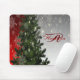Tapis De Souris Monogramme de Noël Arbre vert Rouge Argent Flocon