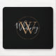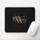 Tapis de souris monogramme de nom de script noir et or chic élégant. Vous pouvez personnaliser le nom, l'initiale du monogramme et personnaliser la police et les couleurs pour créer votre propre design unique. Conçu par Thisisnotme©