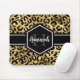 Chic or et noir empreinte de léopard mousepad avec un nom personnalisé et modèle monogramme. Un motif poster de animal de safari mignon et branché, arrière - plan surmonté d'un petit morceau de personnalisation.