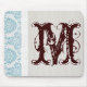 Blue Filigree Damask Blanc gris Tourbillonnant Design Papier Texture Papier-Texture Monogramme Souris initiale Pad Personnalisé