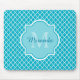 Tapis De Souris Monogramme et nom de Quatrefoil bleu turquoise cla
