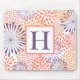 Tapis de souris monogramme violet et corail. Un motif floral clair orne ce tapis de souris. Personnalisez avec votre initiale. Choisissez le style de police et la couleur qui convient à votre style personnel.