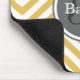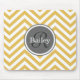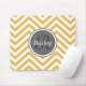 Motif en zigzag monogramme blanc et jaune chevron avec nom personnalisé. Design géométrique moderne, mignon, girly, tendance, avec une plaque d'identification en cercle gris qui est facilement customisé avec votre prénom et votre lettre initiale de nom.