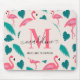 Tapis De Souris Monogramme moderne Feuilles tropicaux Flamant rose