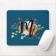 Tapis De Souris Monogramme Moderne floral Initial bleu marine