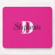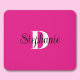 Un mignon script noir pour son nom sur une lettre monogramme moderne blanche et audacieuse contre solide poutre rose. Modifiez le style, la taille et la couleur de la police pour qu'elle corresponde à son style personnel. Un joli cadeau mousepad retour à l'école pour votre fille qui va à l'université.