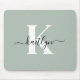 Cette simple et élégante mousepad vert sauge avec votre prénom dans une police de script tendance en noir et votre première initiale dans une police de casquette moderne en blanc est parfaite pour votre bureau/bureau. C'est design, tendance et pourtant très classique.
