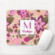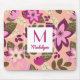 Ce tapis de souris personnalisé présente un design floral moderne avec des fleurs roses et magenta sur un arrière - plan orange coucher de soleil. Personnalisez-le avec un nom et une initiale.