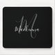 Monogramme noir blanc moderne Script Girly Souris Pad. Personnalisez cette élégante conception monogrammée de pavé de souris avec votre nom et votre monogramme initial dans une typographie chic, tendance et girly script. Un cadeau parfait pour elle.
