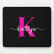Cette simple et élégante mousepad noire avec votre prénom dans une police de script tendance en blanc et votre première initiale dans une police casquette moderne en rose chaud est parfaite pour votre bureau/bureau. C'est design, tendance et pourtant très classique.