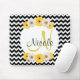 Tapis De Souris Monogramme Personnalisé noir blanc chevron Daisy