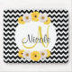 Ce motif chevron est créé avec des zags zig noirs et blancs. Il y a un monogramme au milieu de ce produit avec du jaune et du noir. Il y a des marguerites au sommet du cercle blanc. Ce produit est extrêmement élégant, et chacun saura à qui il appartient !
