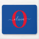 Tapis De Souris Monogramme personnalisé Nom du script Bleu Blanc R