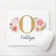 Un magnifique tapis de souris rose monogrammée féminine, avec des fleurs roses et une lettre en or monocorde O. Personnalisez le tapis de souris en ajoutant votre nom sous le monogramme. Fait un cadeau amusant pour un ami ou pour un cadeau de femme d'honneur. Conçu pour vous par Blackberry Boulevard.
