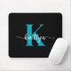 Cette simple et élégante mousepad noire avec votre prénom dans une police de script tendance en blanc et votre première initiale dans une police de casquette moderne en turquoise est parfaite pour votre bureau/bureau. C'est design, tendance et pourtant très classique.