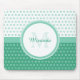 Tapis De Souris Monogramme vert et blanc de mod de pois avec le