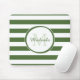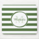 Un grand mousepad à large bande vert et blanc. Personnalisez ce motif tape-à-l'oeil en ajoutant votre nom et votre initiale monogrammée. Ce monogramme élégant fait partie de la collection de couleurs estivales de Treetop Office Essentials.