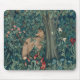 Tapisserie de renard solitaire dans un environnement forestier luxuriant. Feuilles verts profonds, fleurs de renard. Les arts et l'artisanat William Morris sont de la tapisserie de l'époque.