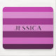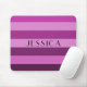 Tapis de souris avec un motif rayé violet et rose et imprimé de nom personnalisé. Tapez votre nom dans le champ modèle ou laissez-le vide pour une conception motif simple. Accessoires informatiques correspondants disponibles.