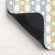 Un élégant motif de formes géométriques argentées et dorées, reliées par une série de serpentins linéaires en dentelle.