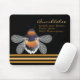 This contemporains objets a geometric gold color beehive pattern, bumblebees, and a black color background.