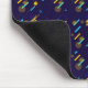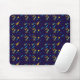 Mouse pad with a vibrant space-themed design, featuring rockets and planets against a dark blue background. A white mouse rests on the pad, suggesting usage.