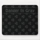Mousepad noir avec un symbole biodanger sous-déclaré motif en gris. Le modèle fournit un champ de texte modifiable pour une personnalisation facile avec votre nom ou message.