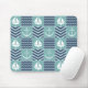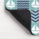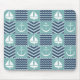 Un motif de carrés turquoise orageux, décoré d'un voilier et d'une ancre blancs, et de carrés bleu marine, accentués de chevrons et de vagues bleu pâle, est accentué par la couture blanche pour créer une atmosphère nautique classique.