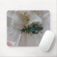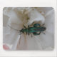 Cette mousepad présente une photo d'une espèce britannique de dendroctone du pin ponderosa de couleur bleu vert, assise sur une fleur blanche de l'oeillet. La photo a été prise en utilisant la macro photographie pour montrer le détail et la couleur de cette belle espèce de coléoptères.